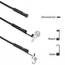 Wifi endoskop CEL-TEC F280 je pregledovalna kamera z dvojno lečo, ki lahko brezžično deluje z mobilnimi napravami Android in iOS. Preprosto namestite aplikacijo in si nato oglejte sliko s kamer na telefonu ali tablici. Ročaj je opremljen tudi s praktičnim držalom za telefon. Sprednja kamera je opremljena z 8 močnimi LED diodami z nastavljivo jakostjo svetlobe. Kamera je vodotesna zahvaljujoč zaščiti IP68. Naprava je primerna za pregledovanje podvodnih okolij, motornih vozil, kanalizacijskih cevi in drugih težje dostopnih površin.
