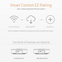 - Preprosto združevanje sekundarnih naprav ZigBee s pritiskom na gumb (Apple) ali aplikacijo (Tuya).