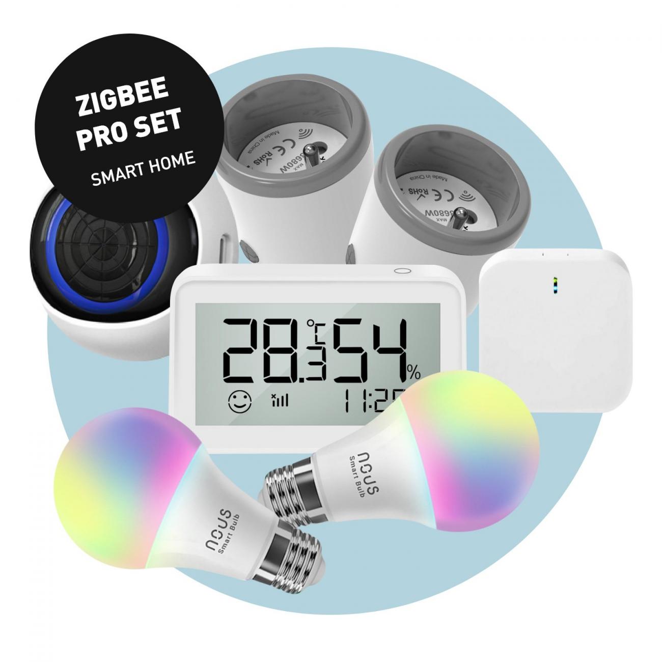 Paket CEL-TEC ZigBee Pro je zbirka izdelkov za pametni dom, s katerimi lahko preprosto upravljate svoj dom, od razsvetljave do spremljanja porabe energije in zaznavanja prisotnosti ljudi. Paket CEL-TEC ZigBee Pro vključuje vse, kar potrebujete tudi popolni novinci na področju pametnega doma. Vsebina vključuje spretno osrednjo enoto ZigBee, 2x pametne žarnice LED, pametni LCD detektor temperature in vlage, pametni senzor prisotnosti človeka in 2x pametne vtičnice. Prednost protokola ZigBee je, da vse 230V napajane komponente delujejo tudi kot ojačevalnik signala, kar razširja pokritost omrežja za priključitev drugih naprav.
