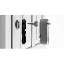 Prosta namestitev - pametna ključavnica Linus® se preprosto pritrdi na trenutni vložek ključavnice na notranji strani vhodnih vrat, zato lahko obdržite svoje prvotne ključe in jih še naprej uporabljate. Vaša vhodna vrata bodo od zunaj videti enako kot prej - brez kakršnegakoli namiga o pametni tehnologiji.
